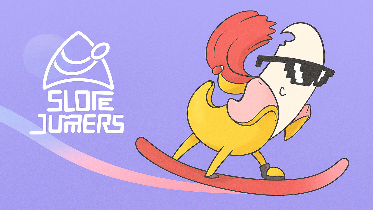 Slope Jumpers is a fascinating hypercasual game that combines physics and unique animation design. You control a banana that is sliding down a hill and gaining speed. Your goal is to jump as far as you can. The timing of the mouse release and the wind determine how high each jump is, making the game simple but hard.