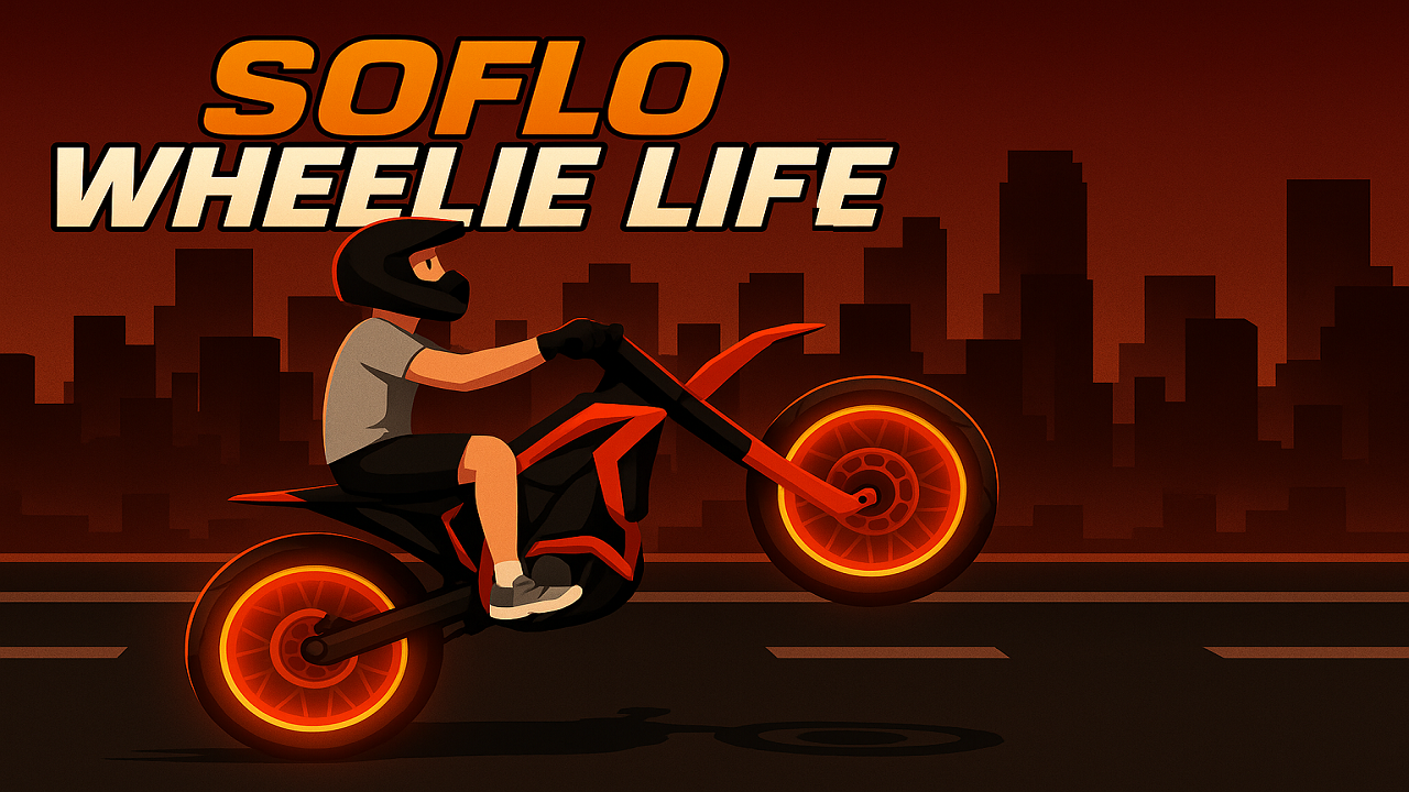 SoFlo Wheelie Life is not just a high-speed driving game, it is also all about control and balance. Once the front wheel leaves the ground, you need to keep the bike at a steady angle by changing its speed and direction all the time. Every long wheelie will raise your score and turn on the multiplier system, which will help you get to the global leaderboard.