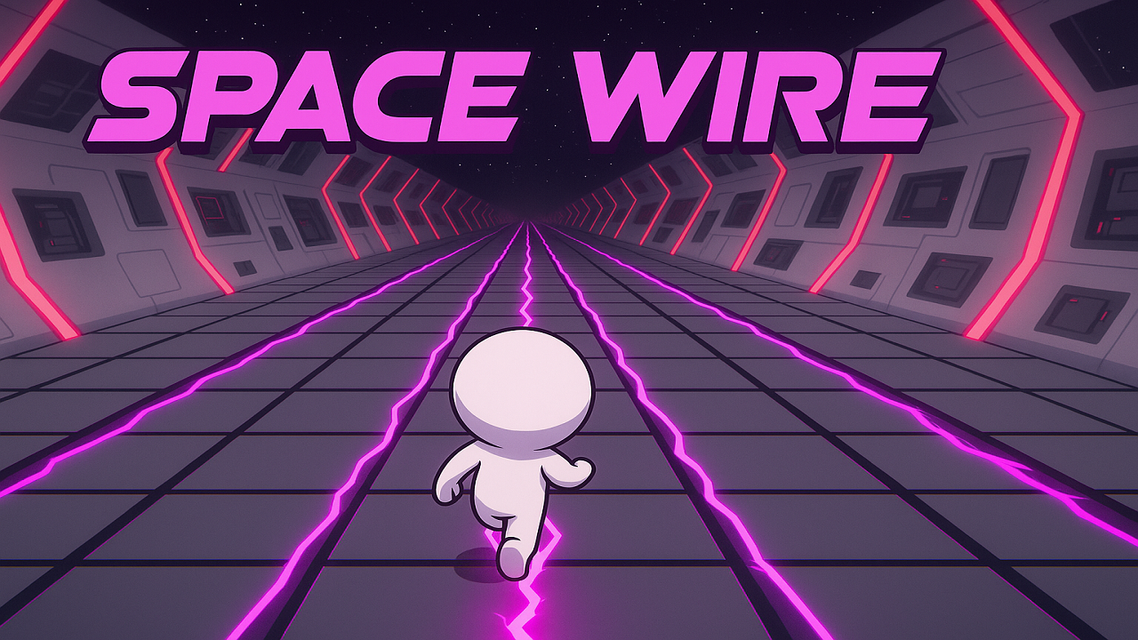 Space Wire opens up a tunnel space where players control a tiny astronaut who glides across glowing wires. The gameplay revolves around dodging spiked balls and triggering music as they change lanes, creating a tense and engaging feeling. The pace increases constantly, making every meter of the road ahead a new challenge!